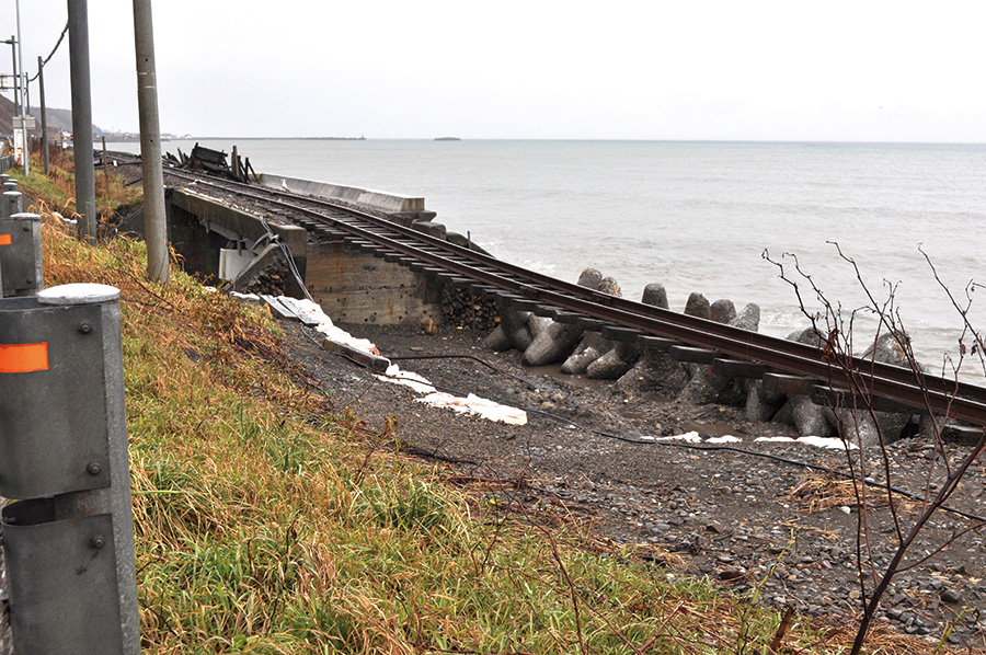写真③はJR日高線です。線路が高波に侵食され、これを機にJR北海道は復旧工事を断念、日高線は廃線となります。沿線自治体は存続を訴えていましたが廃線となりました。JR根室本線の新得・富良野間も増水で橋桁が流され、復旧工事に入らないで放置、結局廃線になりました。北海道の鉄路は災害に見舞われるとそれを機に廃線議論が起き、廃止される、この先の経緯はそう進んでいくのでしょうか?